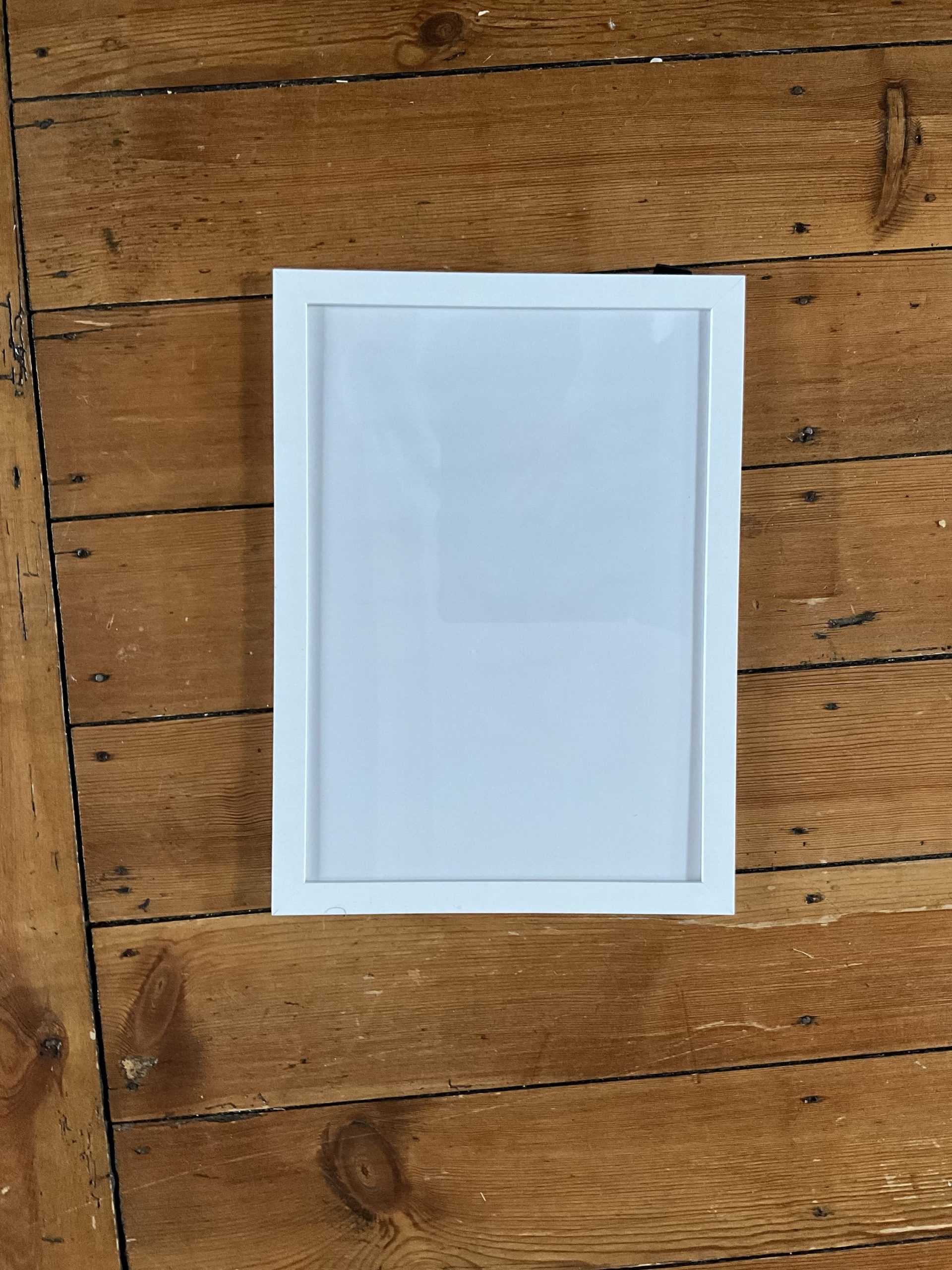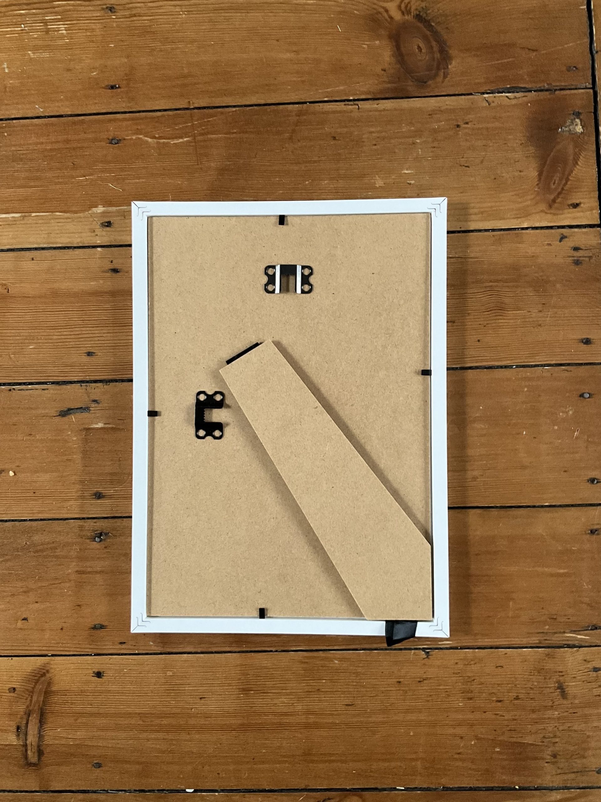 Option d’encadrement: verre plexiglass, cadre en bois blanc, format A4